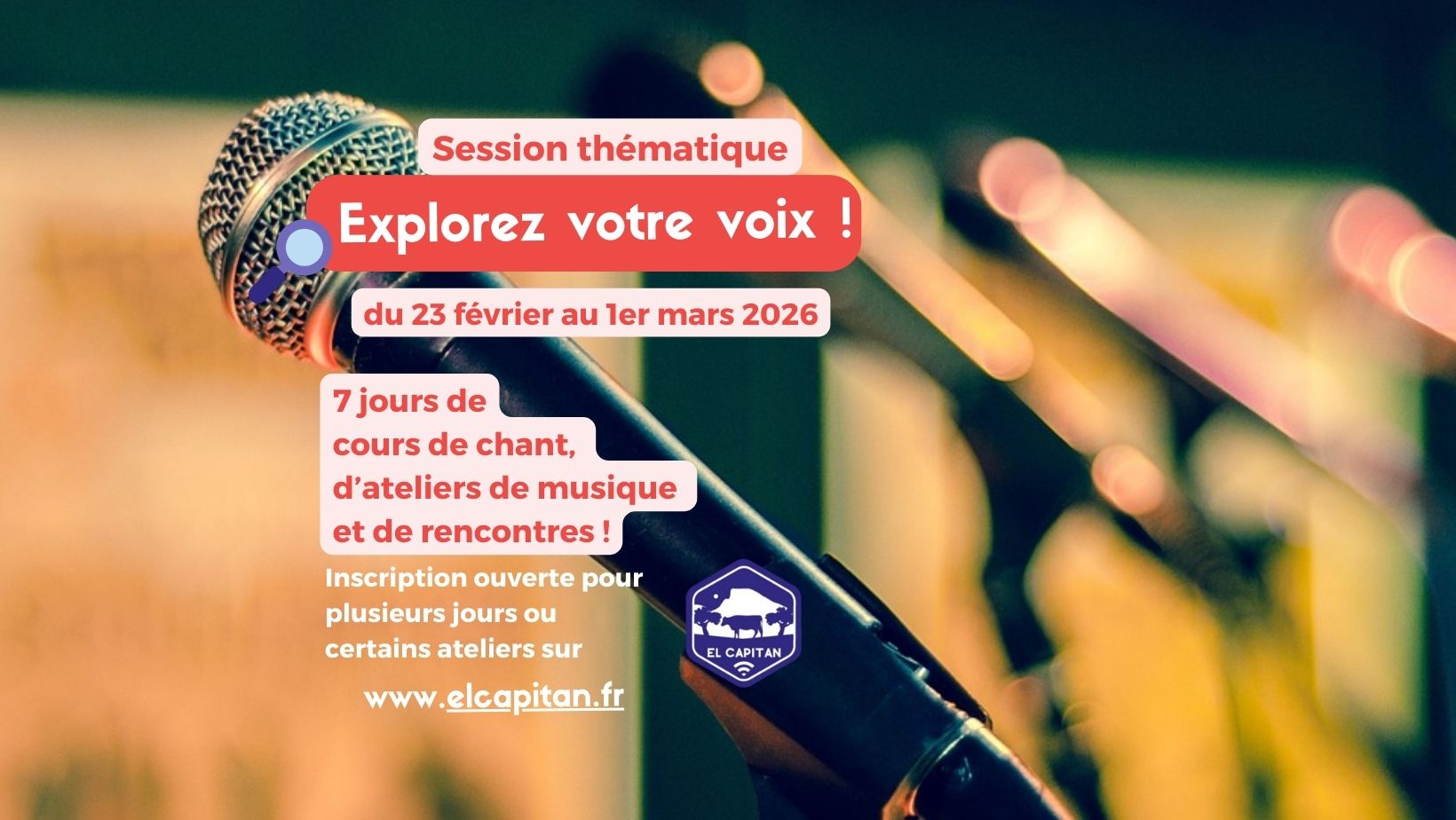 Une parenthèse à la campagne pour faire évoluer, libérer et célébrer votre voix sous toutes ses formes. Une dizaine de professionnels se réunissent à El Capitan pour faire découvrir leurs disciplines et techniques.